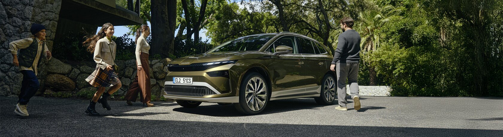 Nå er nye Enyaq her. Med nytt design, økt rekkevidde og enda mer utstyr som standard. I tillegg får du selvsagt alle de gode Škoda-kvalitetene med smarte løsninger, romslig kupé og bagasjerom på 585 liter.